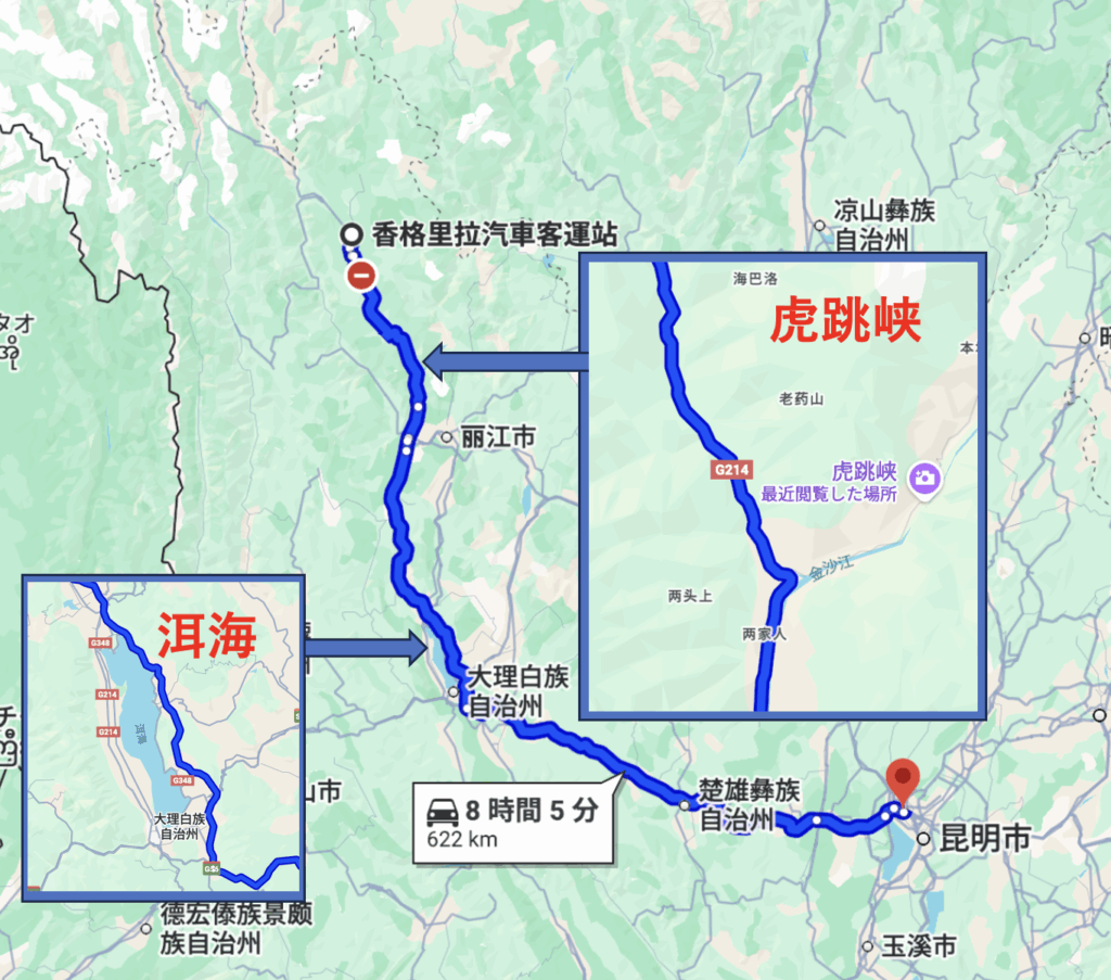 昆明駅から香格里拉まで600㎞を越える距離を陸路で移動されました。