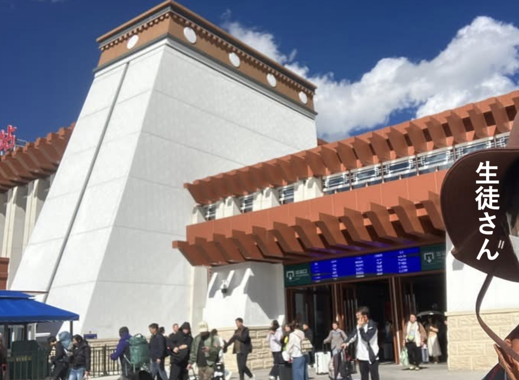 駅からもう素敵です。スーツケースを持ってる方がたくさんいらっしゃいますね!香格里拉は中国国内でも人気の観光地です。