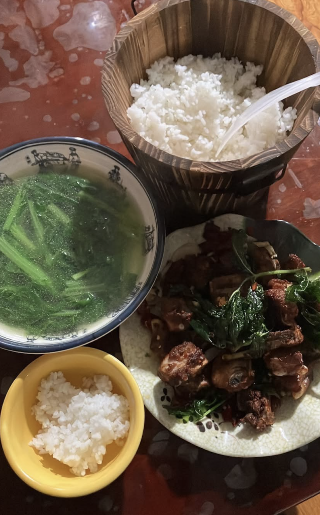 ご飯は自分でお椀に盛って食べるパターンですね。面白いです!